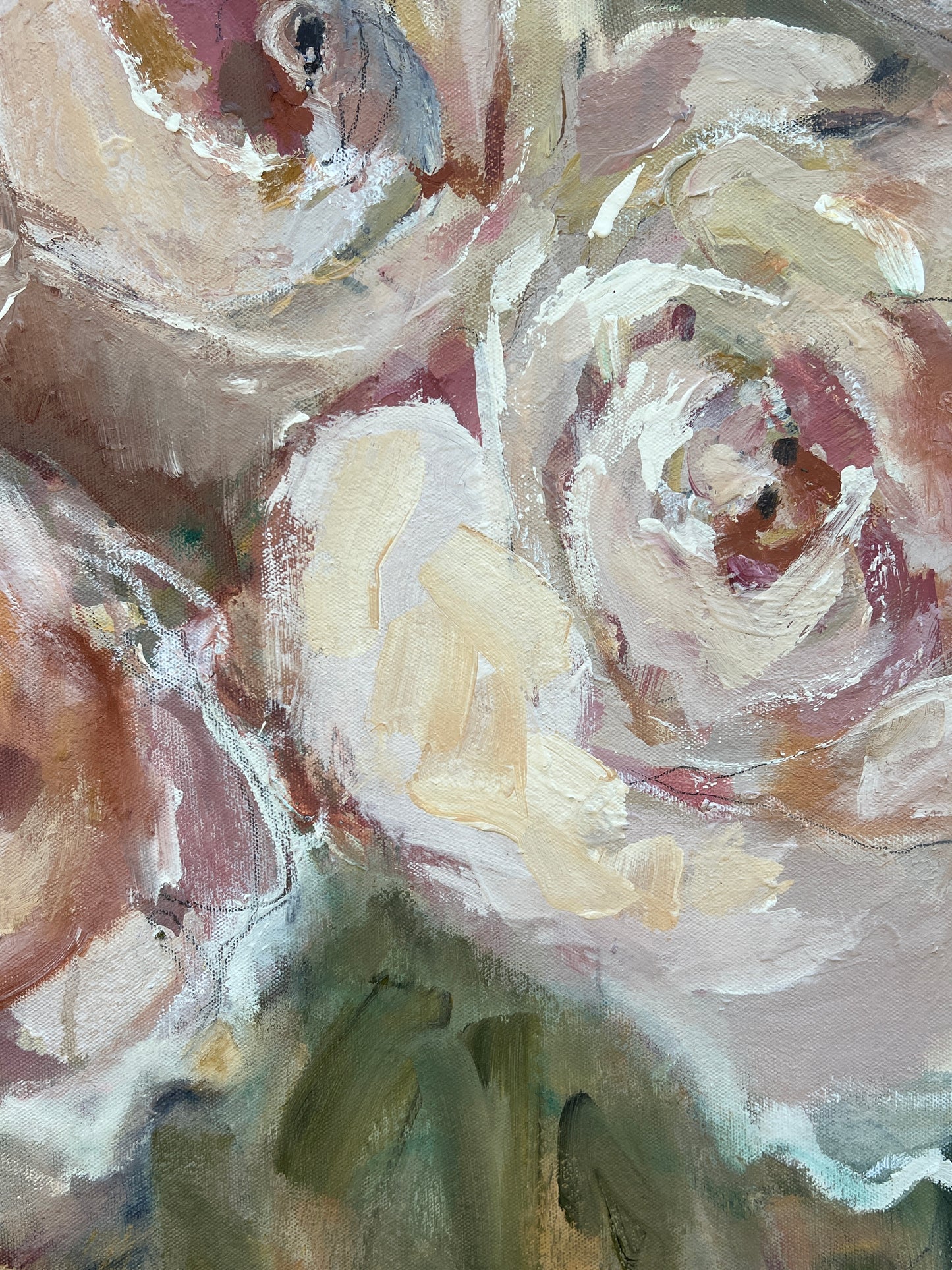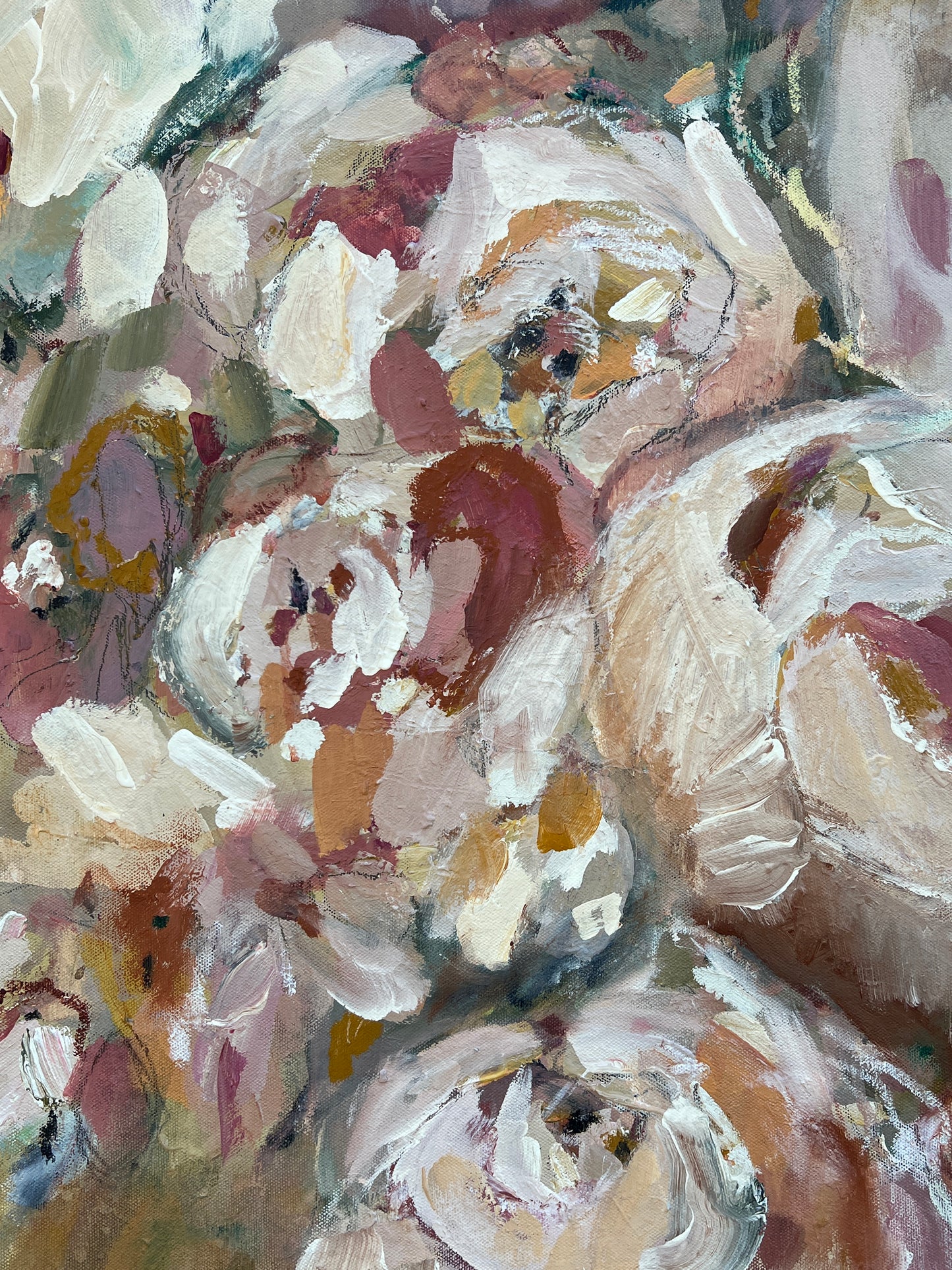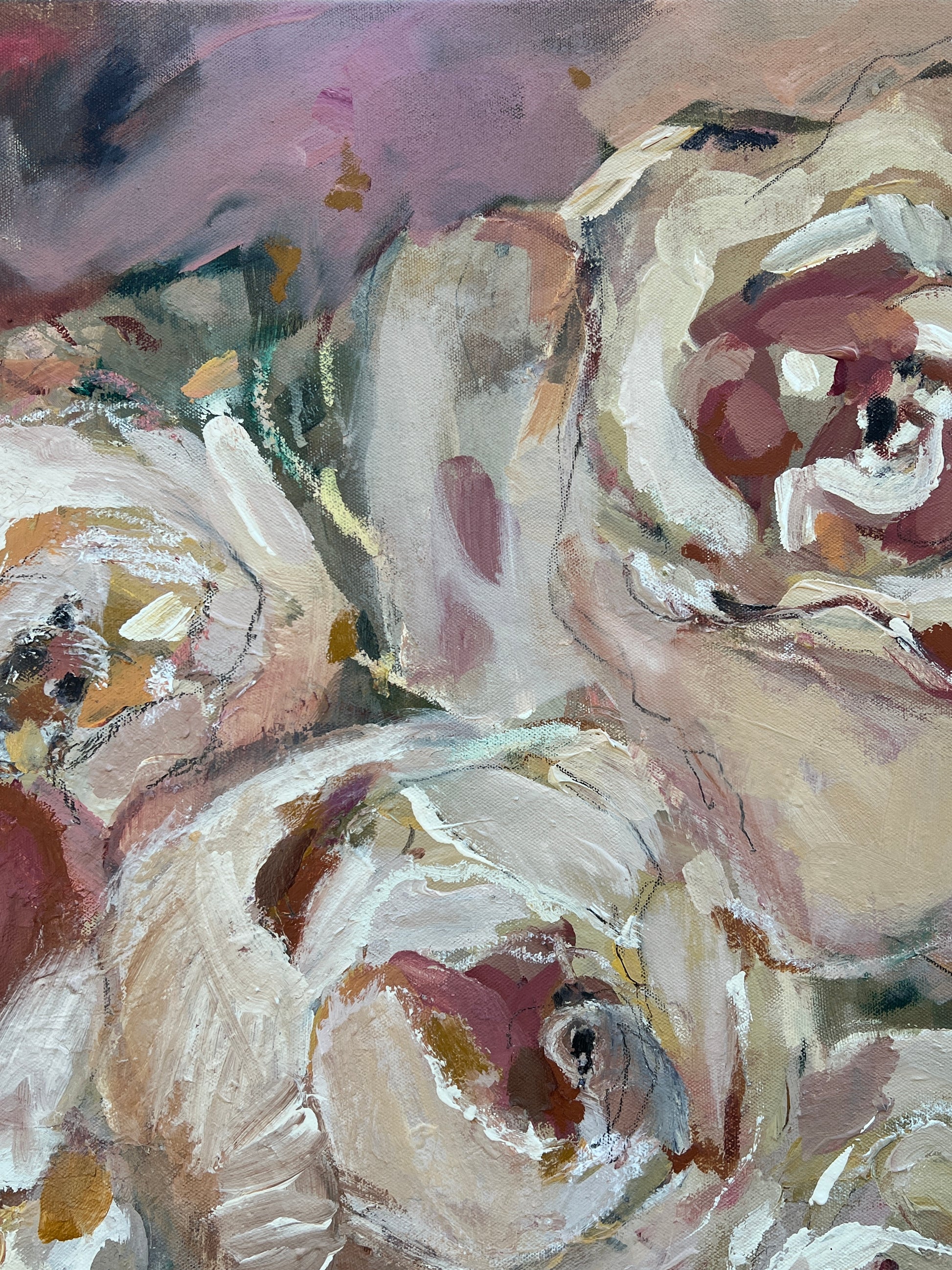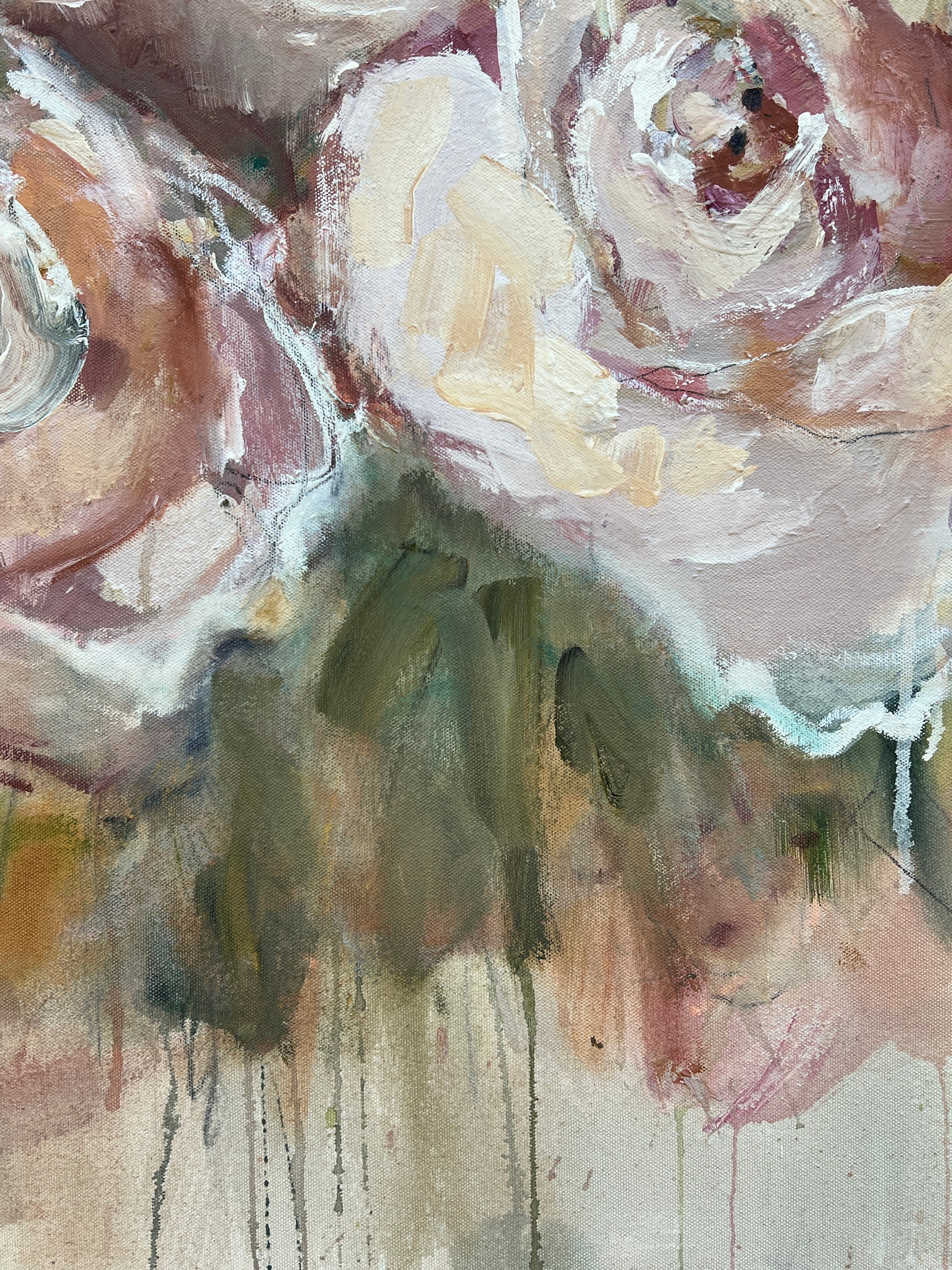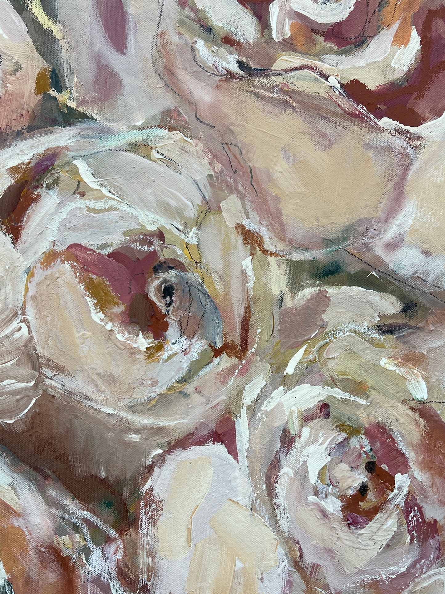 Furthermore the contrast between "beneath" and the visual beauty of the pink and gold colors in the painting symbolizes the desire to rise above negativity or toxicity. That instead of being passive or submissive, there is a flourishing and vibrant presence in the artwork.