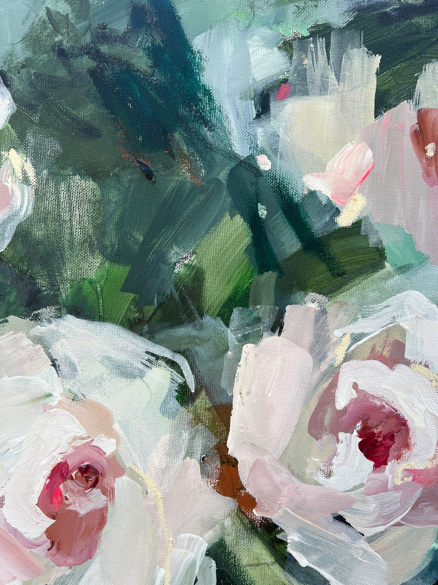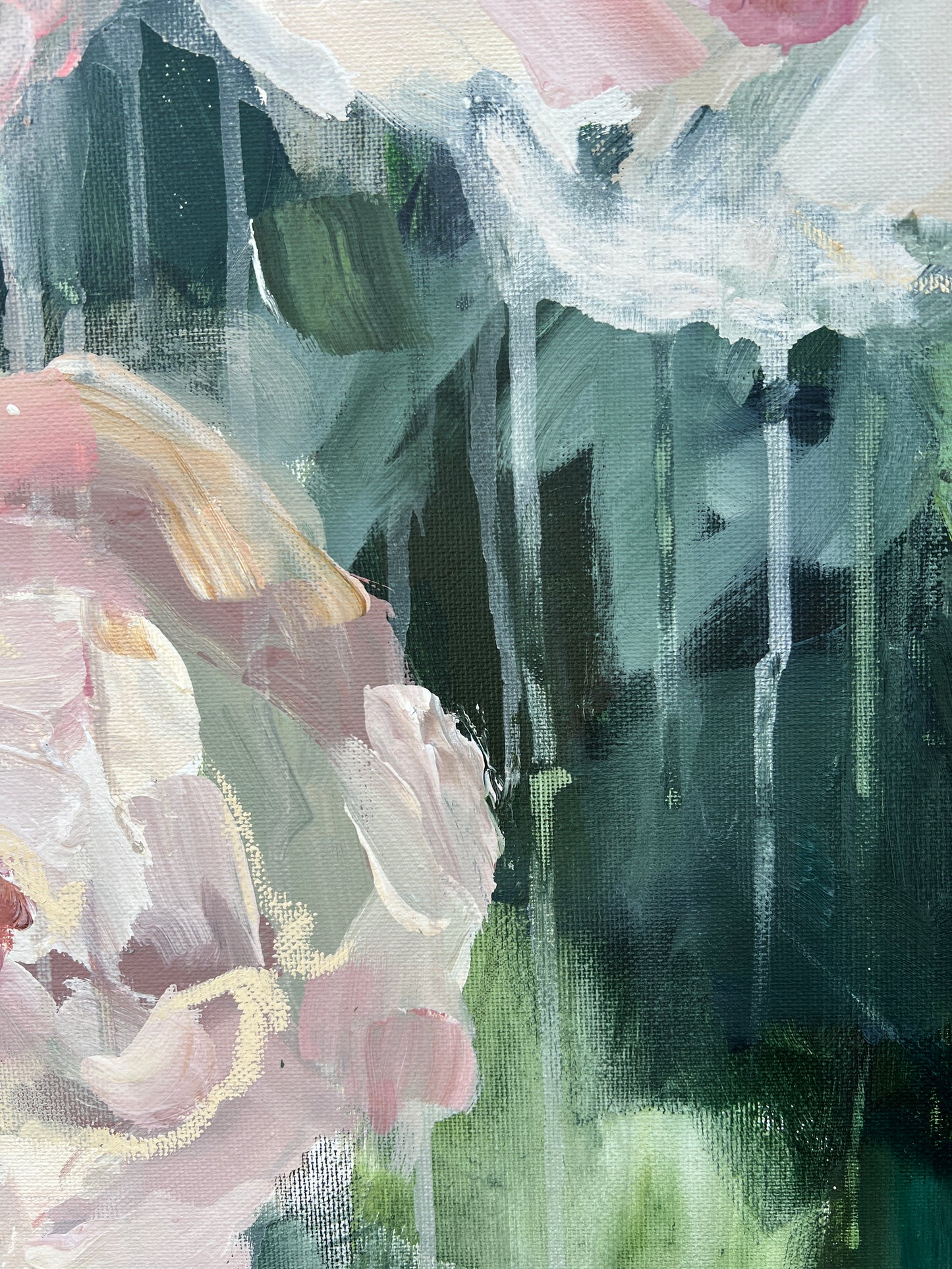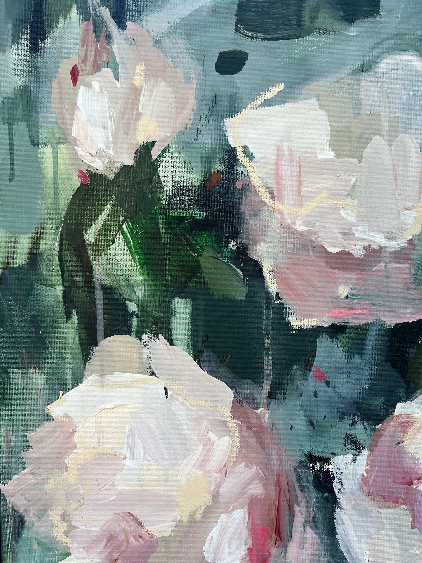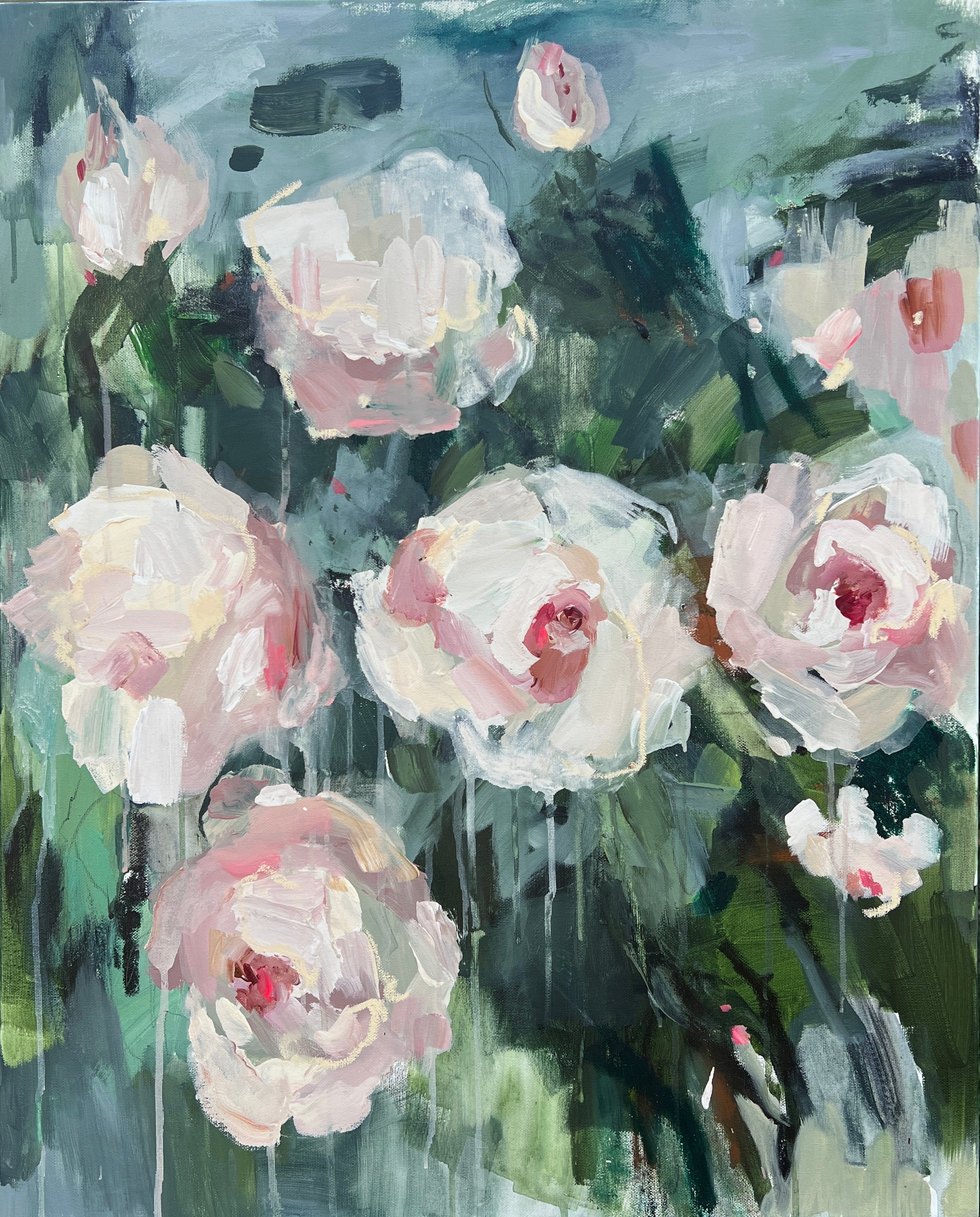 "Not in the Garden" expresses that the emotional complexities within relationships that often exist outside idealized spaces—highlighting the messiness, unpredictability, and raw emotions that define real connections; where the emotional landscape felt distant from the serene imagery of a garden. This painting represents a time when there was a disconnected from nurturing spaces, emphasizing the themes of isolation, longing, or the search for meaning beyond beautiful facades.