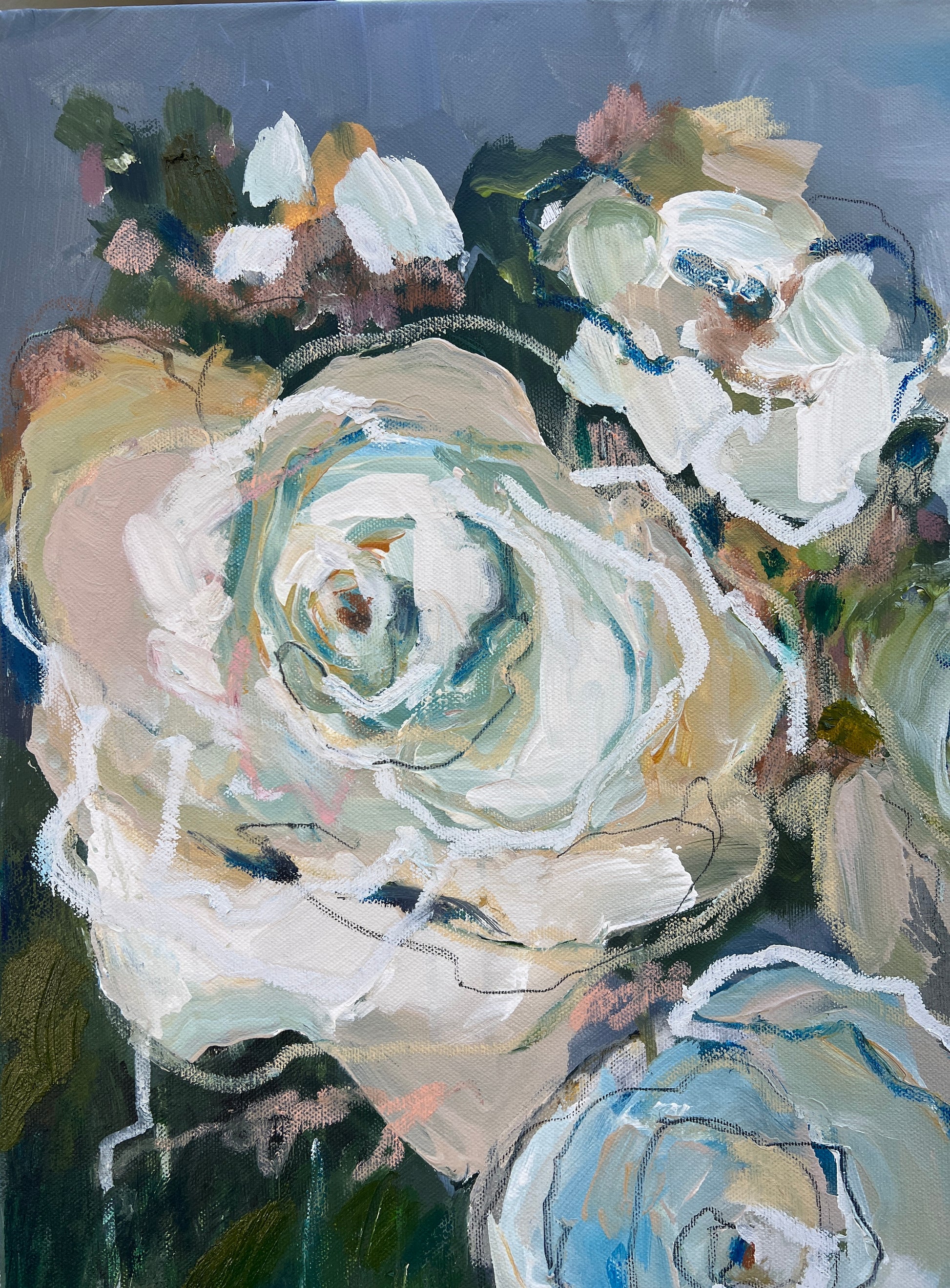 This painting is 20"x24" and is made with oil, acrylic, charcoal, and pastel on stretched canvas.